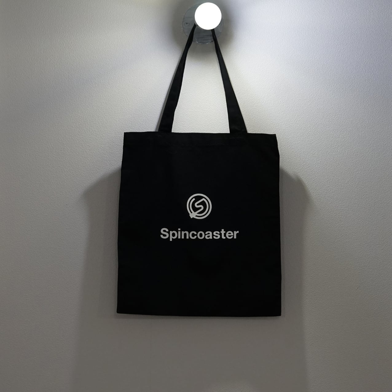 A tote bag featuring the Spincoaster logo.